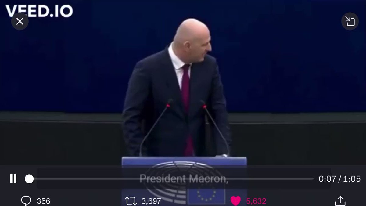 «Πρόεδρε Μακρόν, με δεδομένους τους πολλούς περιορισμούς των πολιτικών δικαιωμάτων και ελευθεριών στη Γαλλία κατά τη διάρκεια της πανδημίας, σας ζητώ μόνο ένα πράγμα: ως πρόεδρος της ΕΕ, σας παρακαλώ να κάνετε ακριβώς το αντίθετο από αυτό που κάνατε στη Γαλλία.